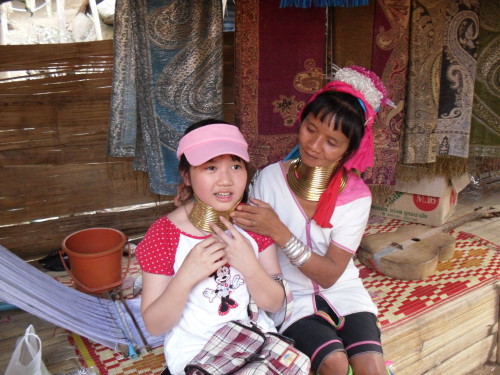 隨著年紀的增長銅圈越加越高,直到死亡後伴隨著遺體加以火化─導遊如此介紹;